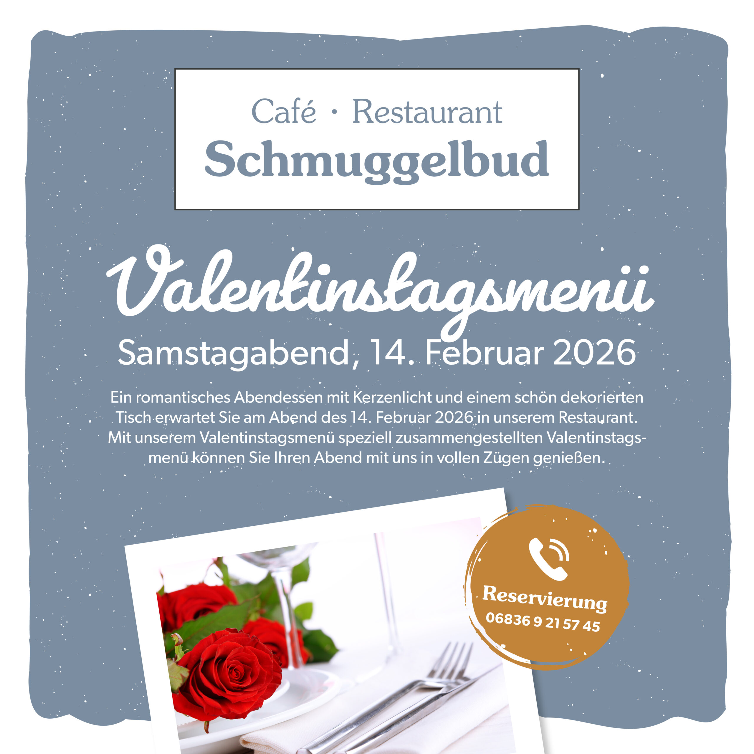 Am 14. Februar ist Valentinstag! Reservieren Sie schnell Ihren Tisch und genießen Sie ein paar ruhige Stunden und unser Valentinstagsmenü in der Schmuggelbud!